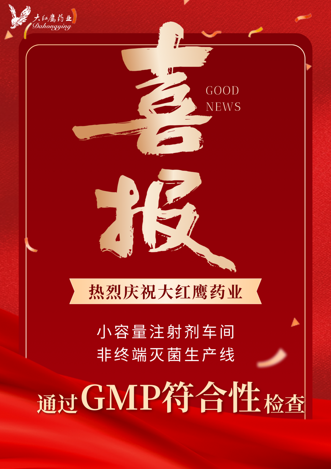 喜报 | 大红鹰药业新建小容量注射剂生产线顺利通过药品GMP符合性检查